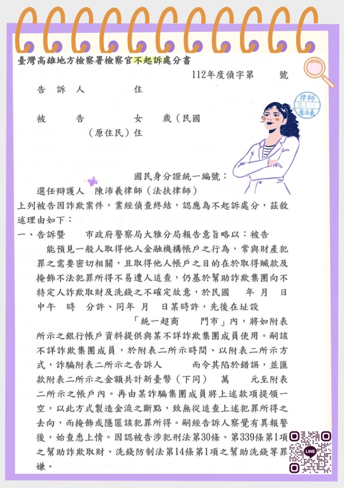 除了專業執業之外,分享真實案例與生活化的法律觀念,幫助大眾提升法律意識,將法治精神融入日常生活。
